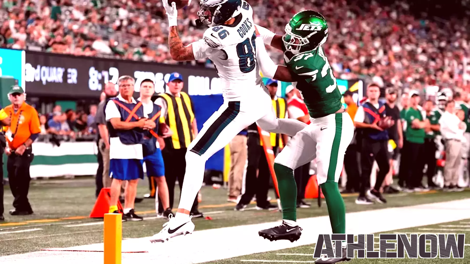 Despite the Eagles holding a comfortable 19-3 advantage at one point, the Jets mounted a late-game rally. Quarterback Adrian Martinez took charge and orchestrated two consecutive scoring drives, bringing the Jets back into contention. The tension escalated when running back Donovan Edwards plunged into the end zone for a 1-yard touchdown, narrowing the gap to just two points with 3:07 remaining on the clock.